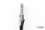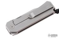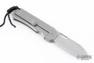 This knife features a tumbled drop point blade with a thumbhole. The handle has a tumbled titanium frame with a matching tip up pocket clip. Includes the original box and papers. Excellent Condition.
