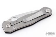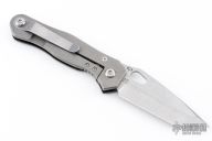 The Quartermaster Roper has a stonewashed tanto blade with notched thumbrest and thumbhole. The handle has a black G-10 and tumbled titanium frame with a tip up tumbled stainless steel clip. Excellent Condition.
