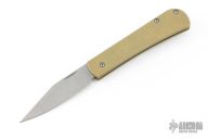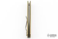 This production slipjoint folder by Serge Panchenko features a stonewashed M390 blade with nail nick. The handle is anodized and stonewashed titanium with a tip up clip. Has a halfstop, flush in all postions. Comes in original packaging. Excellent condition.
