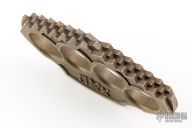 Uncle Stumpy is a man who is not afraid to get his hands dirty. Due to this lifestyle, he was in need of a manly exfoliator as every modern gent is. Hence, the Snuckles exfoliator and meat tenderizer. Use with care, or don't. Uncle Stumpy isn't responsible for stupidity. Comes with original bag. Made from hand textured brass. Excellent condition.