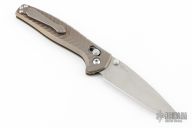 This 781 Anthem by Benchmade features a tumble finished drop point blade with dual thumbstuds. The handle has a machined and integrally constructed frame with axis lock and matching reversible tip up clip. Comes with original box, drawstring pouch and papers. Excellent condition.