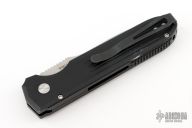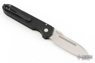 This Invictus by Pro-Tech is a Prometheus Design Werx design, it features a tumbled blade with satin finished flats and a notched thumbrest.  The handle has a black aluminum frame with a black stainless steel tip up clip, lanyard hole at the butt. Push button with red G-10 inlay and a safety.  Includes the original box and papers.  Has scuffs/scratches otherwise okay condition.  This knife would make a great user.