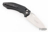 This 808 Loco by Benchmade Knives features a stonewashed blade with thumbhole. The handle has black G-10 scales with black stainless steel liners, stainless steel backspacers, tip up black stainless clip, lanyard hole at the butt. Comes with original box, drawstring pouch and papers. Has some scuffs and scratches, great condition otherwise.