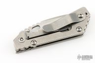 This PT by Mick Strider features a stonewashed blade with notched thumbrest and thumbhole. The handle has a stonewash titanium frame with matching tip up clip. Excellent condition.