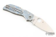 A Chaparral is a shrub native to the Western United States with the unique ability to perennially survive, revive and regenerate after being destroyed by drought. It’s also what Spyderco calls a new and continuing series of gentlemen’s folders. Mid-sized Chaparral folders will have identical blade and handle profiles but showcase variant handle materials. Handle options will be chosen for their elegant appearance and functional utility with a focus directed at making the Chaparral series unique as well as a serious contender in the gent’s knife genre. The Chaparral 2 has a unique textured titanium handle with a mid-positioned back lock and screw-together construction. Attached to the ultra-slim handle, a left-right, tip-up pocket clip arranges the knife deeply inside a pocket. CTS-XHP stainless steel blade. The blade is flat ground and plain edged for the best available cutting performance with non-skid jimping located at both the spine and choil. Excellent condition. Comes with original zippered case and papers.