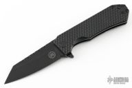 This Black Mamba V2 by Off-Grid Knives features a black clip point blade with fileworked spine and a flipper tab. The handle features a blackened titanium frame with dimple finish and tip up clip. Has a stainless lockface insert. Excellent condition. Comes with original box and papers.