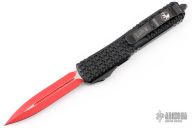 This Ultratech OTF automatic by Microtech features a D/E red blade. Black aluminum contoured frame with black tip down stainless steel clip. Dated 06/2022 and s/n 7941. Excellent condition. Includes original box and papers.