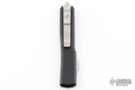 This Ultratech by Microtech Knives features a stonewashed Hellhound blade with satin flats and false top edge. The handle has a black aluminum frame with tip down blasted stainless steel clip and hardware. Comes with original box and papers. 08/2022, S/N 642. Excellent condition.