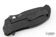 This knife is a Ken Onion design executed by Zero Tolerance and features a recurved spear-point blade with a black finish, stainless steel liners and black G10 scales. It also features the Speed-safe assisted opening system. The black coated steel clip is 4 way adjustable. S/N 4999.  Has some light scuffs, otherwise excellent condition.