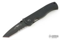 This CQC-7 by Emerson Knives has a black tanto chisel ground partially serrated tanto blade with notched thumbrest and a thumbdisc. The handle has G-10 scales, titanium liners, barrel spacers, and a tip up black stainless clip.  Nice detent, lockup and blade seating. Comes with original box and papers. Excellent condition.