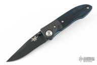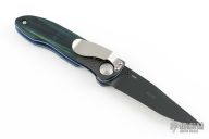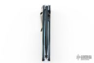 The 690 Elishewitz is a discontinued linerlock folder by Benchmade. It features a black clip point satin finished blade with carbon fiber dovetailed bolsters, blue wood scales, and anodized titanium liners, tip down stainless steel clip. Comes with original clam shell box. Excellent condition.