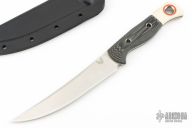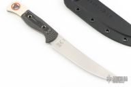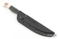 Please use extreme caution when sheathing the MeatcrafterTM. The extremely sharp edge and tip should be carefully guided into the sheath with minimal resistance. Do not use excessive force as the tip and/or edge can cut through any sheath if not guided properly. If you feel resistance, please remove and recenter the knife within the sheath.