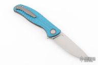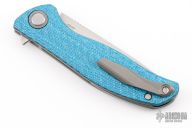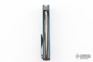 This F3 Flipper from Shirogorov has a tumbled flat ground spear point blade with notched flipper. Handle has AQ Alutex scales, tumbled titanium backspacer, tip up clip and liners. Recessed lanyard bail. Dead center blade seating, excellent detent and lockup. Rides on bearings. Excellent condition. Comes with original box and papers.
