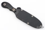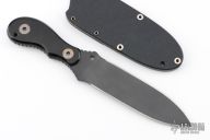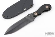 This dagger by J Price features a black chisel ground double edged blade and black linen micarta scales with notched thumbrest and tang, .191" blade stock and 1.32" blade depth, full tang construction. Comes with a locking kydex sheath. Has some light scuffs, otherwise excellent condition.
