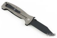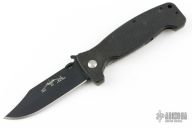 "The CQC-12 is brutishly strong, has a bank vault .125 inch thick lock, and feels like a fixed blade in your hand. I don't think you can get much tougher or stronger than this one. This is not a general utility knife. This is an Abrams Tank with sharp edges. The knife features a double V grind. The handle has the look and feel of the original bayonet and is built for the most extreme use." This knife has a black blade with thumbdisc, wave feature and notched thumbrest. The handle has a black G-10 and blasted titanium frame with black stainless steel tip up clip. Comes with original box and papers, Excellent condition. #037 and dated 2004