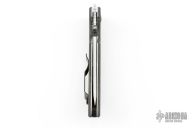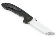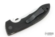 This CQC-8 by Emerson Knives features a silver coated blade with thumb disc, notched thumbrest and wave feature. Black G-10 scales over titanium liners with a black tip up stainless steel clip. Excellent condition. Comes with original box and papers. #0014 and dated 2005