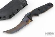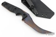 This Bad Mojo by Bawidamann Blades features an acid etched spectral patina blade with notched thumbrest, full tang construction, .189" blade stock and 1.618" blade depth. The handle has black G-10 scales. Comes with a kydex sheath. New from maker!