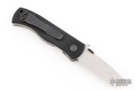 This Mini CQC-7 SF from Emerson features a stonewashed chisel ground tanto blade with notched thumbrest, thumbhole and wave feature. The handle has black G-10 scales, titanium liners, black G-10 backspacer, and a tip up black stainless steel clip. Nice detent, lockup and blade seating. Serial Number 1821 dated 2012. Comes with an Emerson box and papers. Has some scuffs, scratches, and some marring on the hardware. Great condition otherwise.