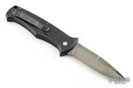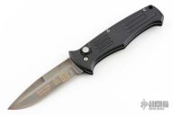 This Auto-SERE by Al Mar Knives features a black coated drop point blade with swedge. The handle is comprised of black anodized and machined aluminum with a black coated, steel tip up clip positioned for right hand carry. Lanyard hole in pommel. Marked "1st Production" on blade. Has a few light scratches on the clip, otherwise excellent condition.