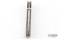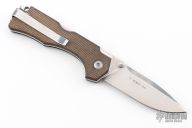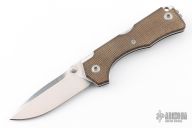 This folder from Fantoni Knives featurs a drop point, tumble finish blade with dual thumb studs, notched thumbrest. The handle is comprised of green canvas micarta scales over stainless steel liners and backspacer. Tip up clip. Comes with original box. Has a couple light scuffs, otherwise Excellent condition.