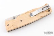 The good cutting performance from a classic Scandinavian knife, the Puukko, is translated into this modern folding knife. The Birk 75 has received many positive reviews for its technical superior design, rugged durability, and its eye popping good look. Now the second version is out featuring scales flush with the liners, clip placed for deep pocket carry, countersunk screws, and the liner lock changed for easier opening and closing. Flat, chamfered scales in Carbon Fiber or in Curly Birch, the choice is yours.