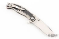 This EDC by Darrel Ralph features a hand rub satin finished Stellite 6K blade with dual thumbstuds, notched thumbrest and flipper tab. The handle has a satin finished titanium frame with carbon fiber inlays and a tip up stainless steel clip. Nice detent, blade seating and lockup. Comes with a zipper case. Has a few light scratches, otherwise excellent condition.