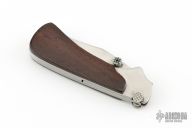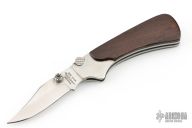 This Toggle Lock folder by Parker Cutlery features a satin finished blade with a single thumbstud. The handle has a stainless steel frame with rosewood scales. Comes with original box. Has a couple scratches, otherwise excellent condition.