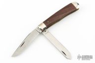 This slipjoint by Rigid Knives features satin finished blades with nail nicks. The handle has nickel silver bolsters, rosewood covers, brass liners and stainless steel springs. Has a couple light scratches, otherwise excellent condition. Comes with a Rigid box.