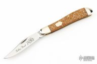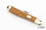 This slipjoint by Bull Dog Brand features a mirror polished blade with nail nick. Dated 2007. The handle has nickel silver bolsters, gold sparkle scales, brass liners and a stainless steel spring. Excellent condition.