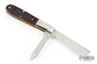 This slipjoint by Case features a mirror polished blades with nail nicks. The handle has nickel silver bolsters, jigged bone covers, brass liners and steel springs. 4 DOT. Has some light scratches, otherwise excellent condition.