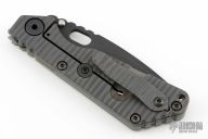 This MS SNG framelock folder by Mick Strider features a black blade and a MEFP G-10 and flamed titanium frame and tip up titanium clip. Includes Hinderer "Lock Bar Stabilizer" for maximum reverse lock retention. Nice detent, lockup and blade seating. Has a couple light scuffs on the frame, excellent condition otherwise.
