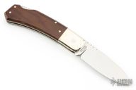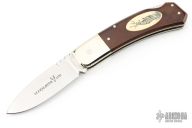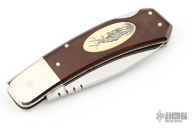 This Deer Slayer Lockback by Precise Knives features a mirror polished blade with notched thumbrest and nail nick. The handle has nickel silver bolsters and liners, brown linen micarta scales, ivory paper micarta inlay with scrimshaw, stainless steel backspacer. Comes with original box. Has some light scratches, otherwise excellent condition.