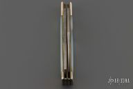 This slipjoint by Maker Moore features tumble finished blades with nail nicks. The handle has nickel silver bolsters, mother of pearl covers with nickel silver escutcheon, brass liners and stainless steel springs. Has a few light scratches, otherwise excellent condition. Comes with original box and papers.