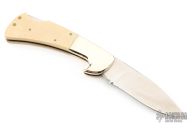 This lockback by Parker Cutlery Company has a satin finished blade with nail nick. The handle has nickel silver bolsters, ivory paper micarta scales, brass liners, stainless steel backspacer. Has some light scratches, otherwise excellent condition.