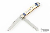This Trapper by Case features 2 polished blades with nail nicks. The handle has nickel silver bolsters, bone covers, with a nickel silver shield, brass liners and stainless springs. Comes with a Case box and papers. Excellent condition.