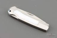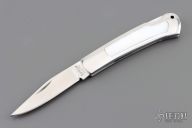 This Indian Ford Lockback by Kershaw features a satin finished blade with nail nick. The handle has a stainless steel frame with mother of pearl inlays and stainless steel backspacer. Comes with original box and papers. Excellent condition.