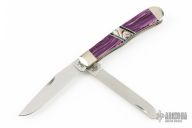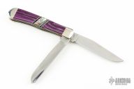 This Trapper by Case features 2 polished blades with nail nicks. The handle has nickel silver bolsters, Purple Malachite and Abalone covers with  nickel silver spacers, nickel silver liners and stainless springs. Excellent condition. Comes with original box and papers.