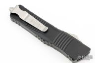 This Combat Troodon by Microtech Knives features a stonewash finished double-edged partially serrated blade. The handle has a black aluminum frame with tip down stainless steel clip and hardware. Comes with original box and papers. S/N 42000 and dated 05/2023. Has a ding on the corner of the frame, and a couple light scuffs, otherwise excellent condition.