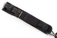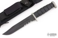 This Extreme Fighting Knife by Ka-Bar features a black partially serrated black blade, .175" blade stock and 1.236" blade depth, hidden tang construction. The handle has bead blasted aluminum guard and butt with a black rubber grip. Comes with black nylon sheath and original box and papers. Excellent condition.