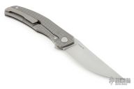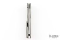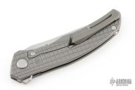 This Quantum MEFP by Shirogorov features a stonewashed Cromax PM blade with notched thumbrest and flipper. The handle has a tumbled and milled titanium frame, backspacer, tip up titanium clip with hidden screws. Rides on SRB, nice detent, lockup and blade seating. Comes with original box and COA. Excellent condition.