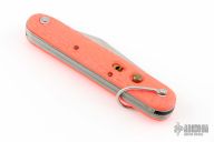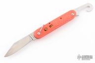 This auto is a Vietnam era government issued to pilots. Stainless steel blade with a parachute cord cut away blade. It is safety orange carved scales. Extra large lanyard bail. The spring still works well. It has a safety lock that can be used in closed position. Made in U.S.A. In great shape for being 40+ years old. Has a few light scratches otherwise the knife is in good condition for its age. Has some blade play in the open position.
