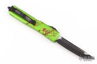 This Ultratech OTF automatic by Microtech features a T/E black tanto blade. Zombietech aluminum contoured frame with black hardware and tip down stainless steel clip. Excellent condition. Includes original box and papers.