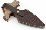 This Push Dagger by Impact knives features a satin finished double-edged blade with .192" blade stock and 1.684" blade depth, full tang construction. The handle has a micarta grip with coin edge brass liners, black liners and file worked spine. Comes with a brown leather sheath and COA. Excellent condition.