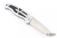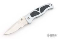 Patriots. Mercenaries. Adventurers. Tales of the Foreign Legion are awash with pictures of nameless men, fighting in nameless places - all for the thrill of the battle. The Junglee Foreign Legion folding combat knife reflects the power and pride of those famous forces. Available in both razor and semi-serrated blade styles, the Foreign Legion series offers an imosing 3-7/8" false-edged drop point blade, crafted in premium AUS-8 stainless steel, along with contoured aviation-style aluminum scales, highlighted by triple-inset textured rubber grips and a stainless steel pocket clip. 3-7/8" blade and 4-3/4" closed. AUS-8 stainless steel. 5.7 ounces.
