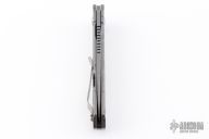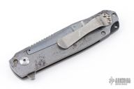 This Flare flipper from Jesse Jarosz features an acid/tumble finished blade with notched thumbrest and flipper. The handle is made up of a distressed and anodized titanium frame with a tip up pocket clip is stonewashed, black G-10 backspacer. Blade is centered when closed, flips well, and locks up with no play. Comes with zipper case and COA. Excellent condition.