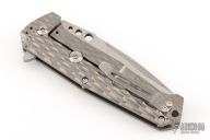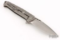 This Operator Grade Hitman Flipper from Jim Burke features a stonewashed spearpoint blade with notched thumbrest and flipper. The handle has a milled titanium frame with titanium tip up clip and hardware. Nice detent, lockup and blade seating. Excellent condition.