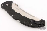The Talwar 5.5 by Cold Steel was discontinued in 2017. It has a satin finished fully serrated blade with thumbdisc. The handle has a black G-10 frame and tip up reversible clip. Has a couple light scratches on the clip, otherwise excellent condition. Comes with original box.