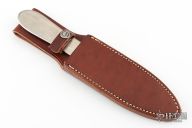 This Model 9 Pro-Thrower by Randall Made Knives. It features a satin finished blade and handle with .244" stock 1.445" blade depth. Solid one piece construction. Accurately balanced and scientifically designed for those desiring a practically indestructible throwing knife. Comes with original brown leather sheath. Excellent condition.