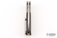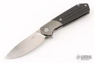 This Framelock Flipper by TwoSun knives features a satin finished blade with notched flipper. The handle has a milled and tumbled titanium frame with carbon fiber scales, a stainless steel lockface insert, titanium tip up clip and backspacer. Rides on bearings, nice detent, lockup and blade seating. Comes with original box. Excellent condition.