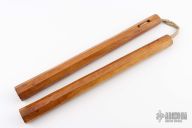 This set of Nunchakus feature two 13.5" wooden sections with cord between. Has some scratches and dings. otherwise good condition.